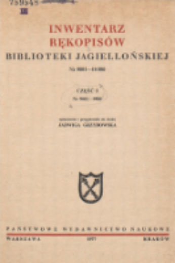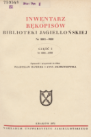 Inwentarz rękopisów Biblioteki Jagiellońskiej : nr 9001-10000. Cz. 1, Nr 9001-9500 /
